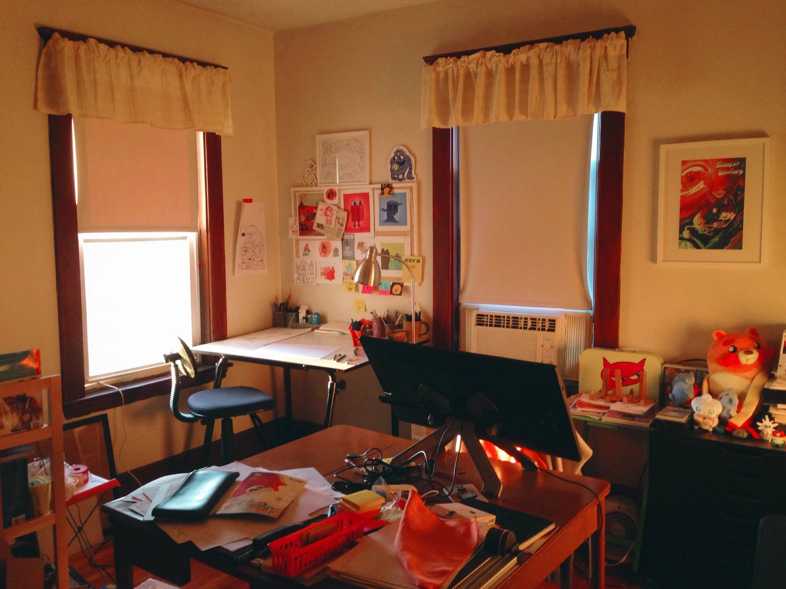Album to listen to while working: Changes every week. I will say I work to a lot of hip-hop, probably because it’s often so high-energy, bold, and built on bravado. Once I was powering through to finish a mini-comic in time for a festival—after working a week straight on it…day and night. My tank was on empty, I was bleary-eyed… panicking. On the final night, Watch the Throne carried me home.