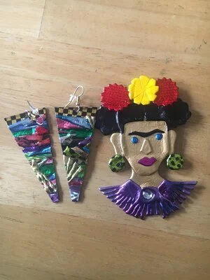 Your vice: Earrings and jewelry. I just came back from New Orleans with a wild set of earrings made a Frida Kahlo pin made with multicolored vinyl. I can’t get enough!