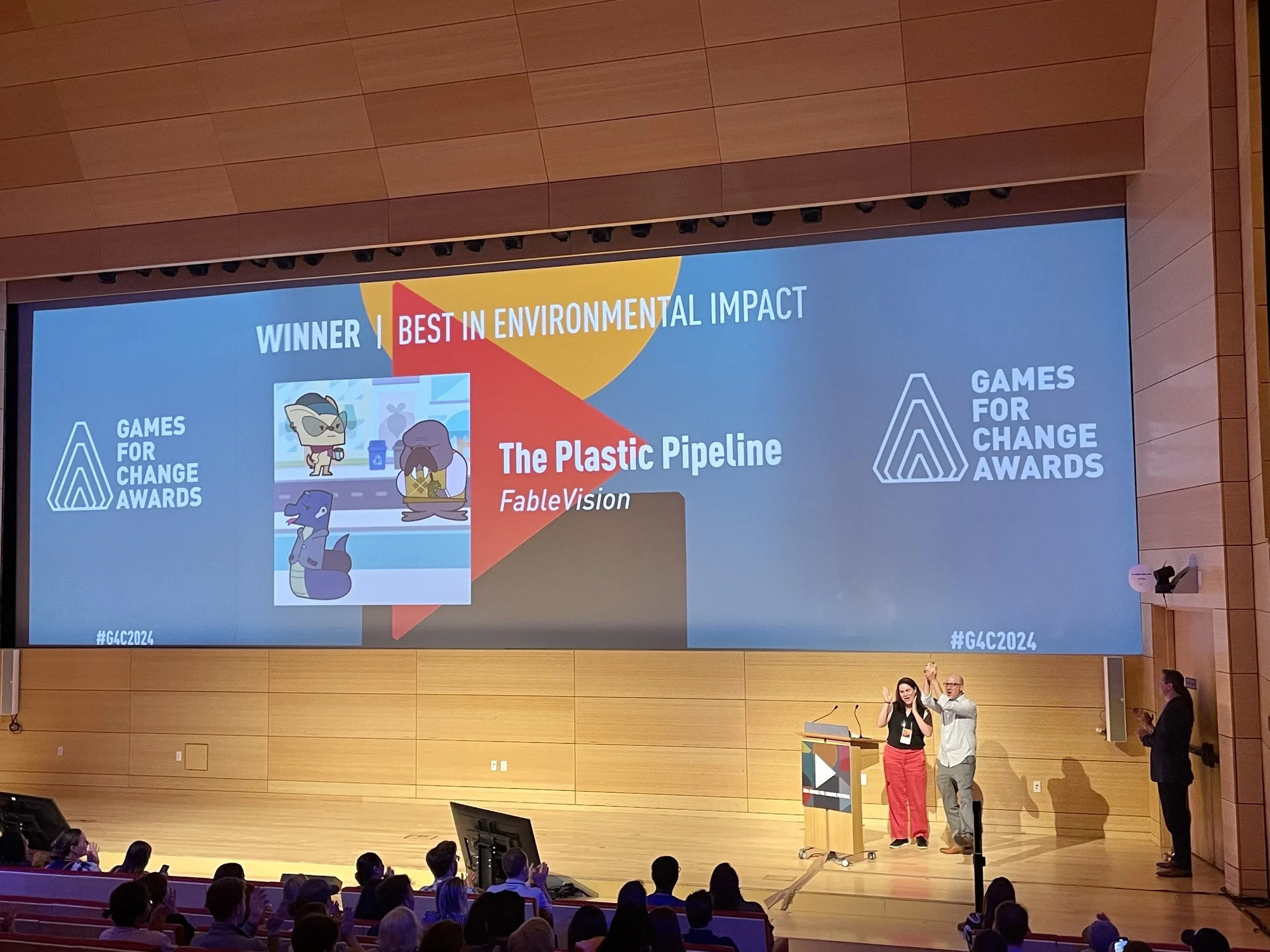 FableVision’s Gary Goldberger and Liz Newbury of the Wilson Center accepting the award for The Plastic Pipeline at G4C!
