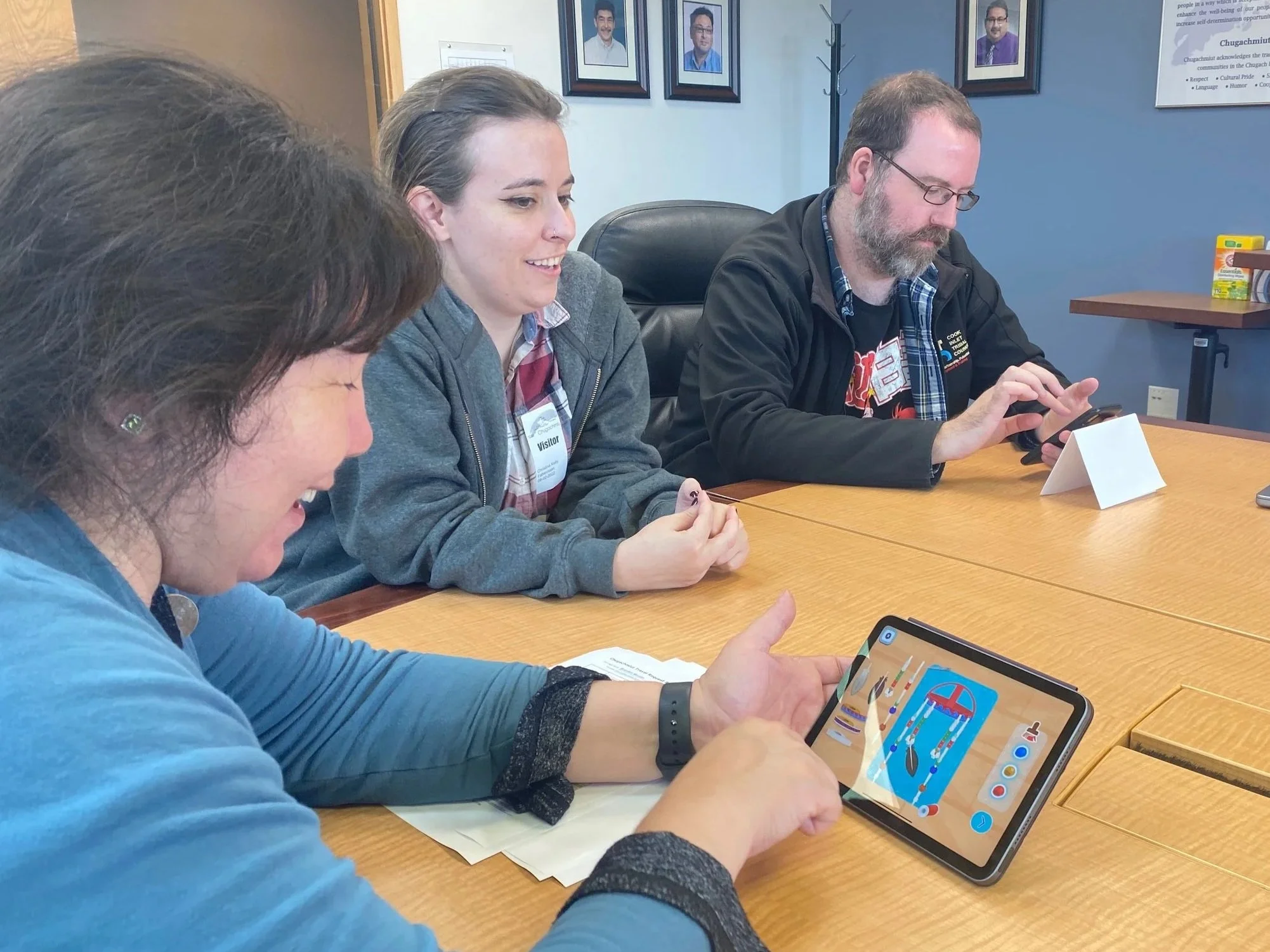 Chugachmiut and FableVision staff playing “Nunaka,” August 2022